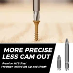 96 μύτες κατσαβιδιού σε μήκη 1″ και 2″ καλύπτουν κεφαλές Phillips, επίπεδες κεφαλές, Torx και ειδικές κεφαλές.