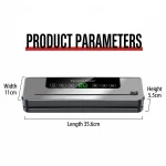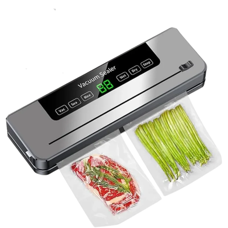 Ένα μηχάνημα σφράγισης κενού στον πάγκο που έχει σχεδιαστεί για να παρατείνει τη διάρκεια ζωής των φρέσκων προϊόντων, του κρέατος, των αποξηραμένων προϊόντων και των βασικών προϊόντων του ντουλαπιού. Διαθέτει εκτεταμένη ράβδο σφράγισης 30 cm, έξι λειτουργίες λειτουργίας, συμπεριλαμβανομένων των ρυθμίσεων σημειακής αναρρόφησης και ρυζοτουβλάκι, φωτισμό αποστείρωσης με υπεριώδη ακτινοβολία και αθόρυβο μοτέρ υψηλής ταχύτητας. Ο αδιάβροχος πίνακας αφής, ο αποσπώμενος δίσκος που πλένεται και ο ενσωματωμένος συρόμενος κόφτης κάνουν την καθημερινή χρήση απλή. Συμβατό με το ηλεκτρικό δίκτυο 100-240V, κατάλληλο για κυπριακά σπίτια και ικανό να χειρίζεται ξηρά, υγρά, λιπαρά και κονιορτοποιημένα τρόφιμα μέσα σε σακούλες κενού με υφή.