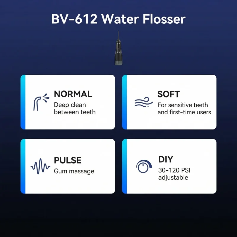 Regular water flossing, particularly at the pressures the BV-612 provides, has clinical backing for improving gum health and reducing plaque more effectively than string floss alone. For anyone managing dental work such as implants or braces, or dealing with persistent issues like bleeding gums or bad breath, the dedicated tip options and multi-mode pressure controls make this device a well-considered investment in long-term dental health.