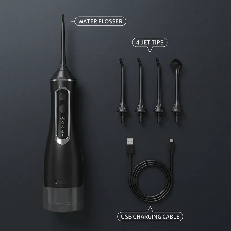 - Four Tip Types: Jet, tongue, periodontal, and orthodontic tips are included in the box