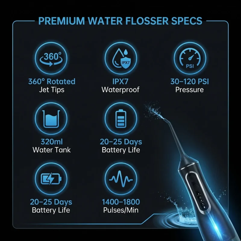 - High-Frequency Pulse Rate: 1,400-1,800 pulses per minute for consistent water pressure throughout each session
