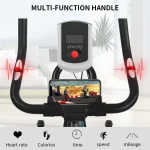 The LCD console tracks heart rate, speed, distance, calories, and time in one place, while a built-in phone holder keeps your screen within easy view. With a reinforced steel frame rated for users above 130kg and front-mounted transport wheels for convenient repositioning, this indoor cycling bike is built for homes and apartments across Cyprus.
