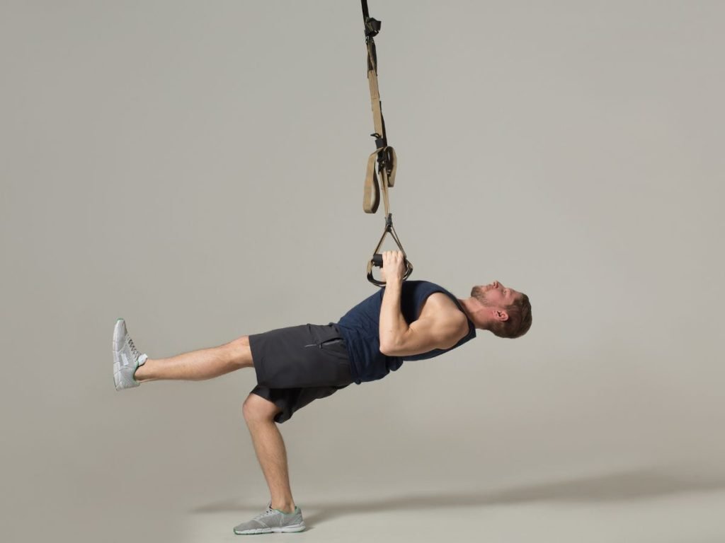 TRX Single-Leg Squat: The ultimate test of leg strength and balance. Hold the handles lightly for support while squatting on one leg. Start with 5-8 reps per leg.