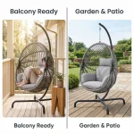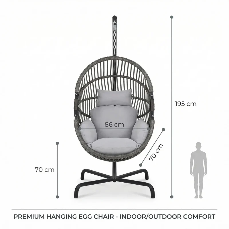 Bring a calm, comfortable corner to your outdoor or indoor space with this Hanging Egg Chair. Suspended from a freestanding single-pole steel frame, this egg-shaped rattan swing chair is equally at home on a Cyprus balcony, garden terrace, or living room. The 86cm wide basket provides generous single-person seating, while the included high-resilience cushion keeps you comfortable during long, lazy afternoons in the sun.